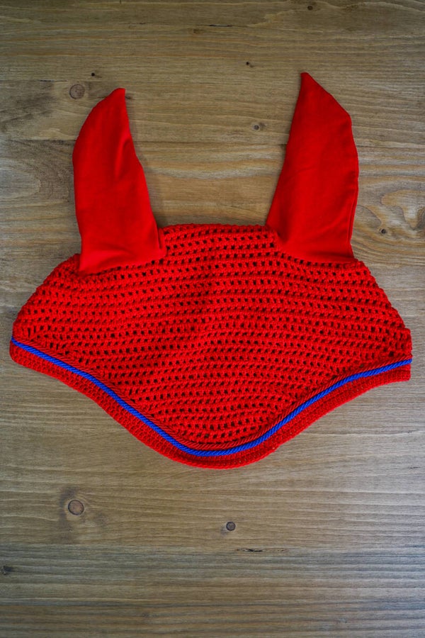 Cuffietta corta rossa con doppio cordoncino e orecchie elasticizzate.